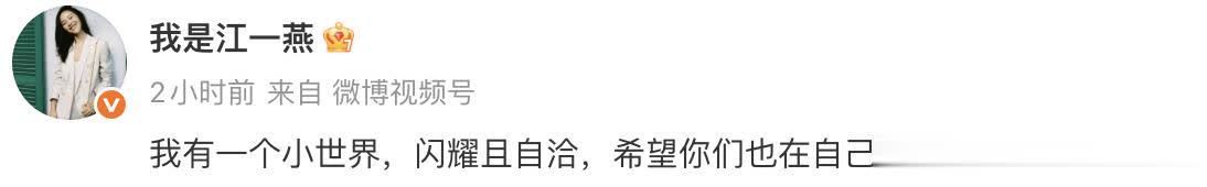 结语正如江一燕在社交平台所写:“我有一个小世界,闪耀且自洽”。